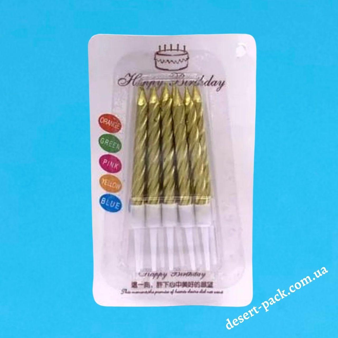 Свічки в торт "Спіраль" 7 см (10 шт.) золото